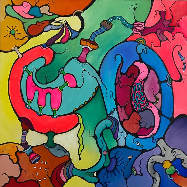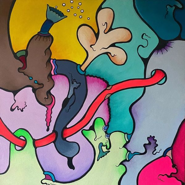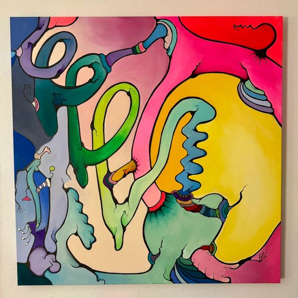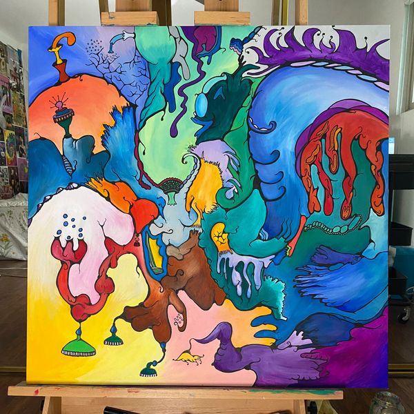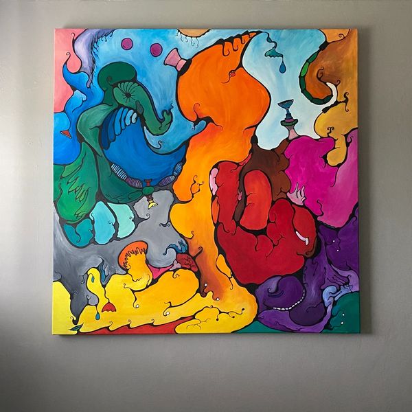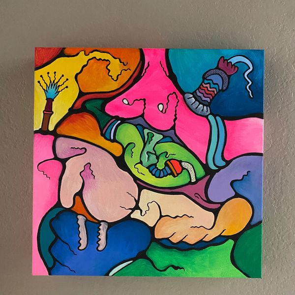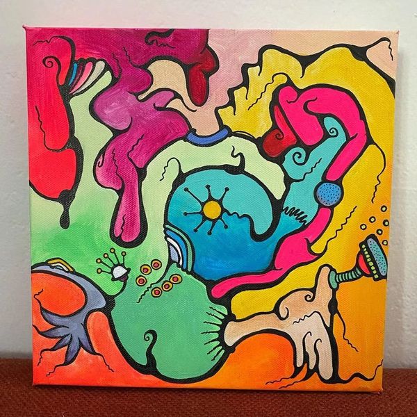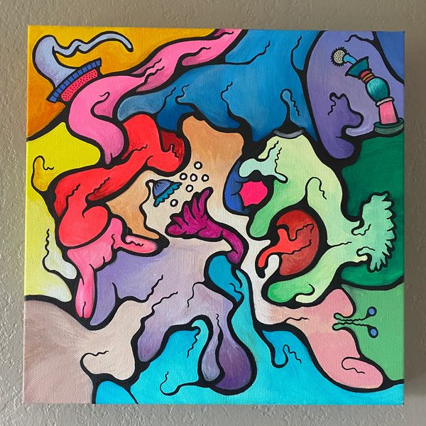 I also take commissions! Pictured here is a personalized painting for my friend Tyler who commissioned a piece with specific thoughts and objects in mind.